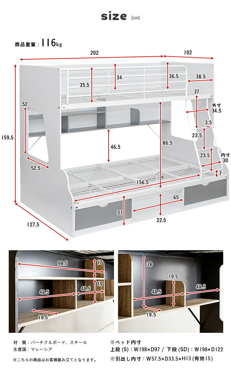 SOLID 宮付き 二段ベッド ロング キ96,900円親子ベッド CUOPiO 二段ベッド 二段ベッ82,700円G★