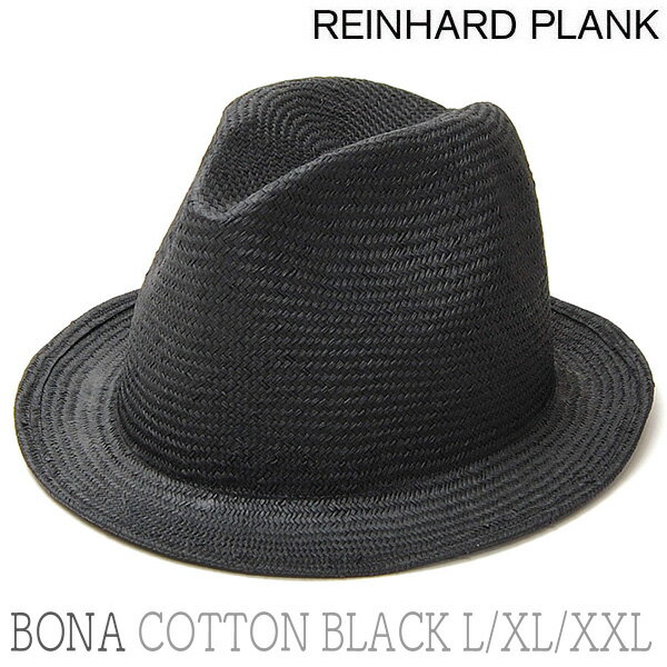 帽子 イタリア”REINHARD PLANK(レナード プランク)” コットン中折れ帽 BONA COTTON BLACK メンズ 春夏 ストローハット [大きいサイズの帽子アリ]