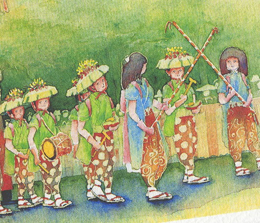 祇園祭 子供棒振り囃子 [ 四条傘鉾 ] ( ポストカード 絵葉書 絵はがき かわいい こども お囃子 水彩画 風景画 夏 山鉾 祭 京都 和風 )