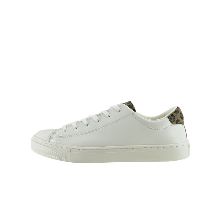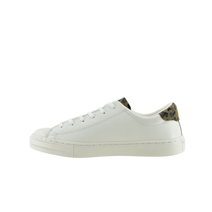 ホワイトレザーにグレーのパイソン柄を組み合わせたホワイト/パイソンと、生成りがかったレザーにレパード柄を組み合わせたオフホワイト/レパードの2カラー展開。