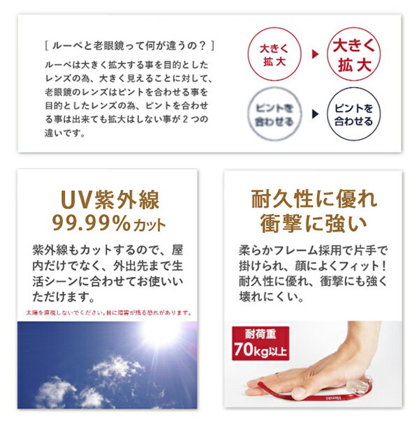 Hazuki ハズキルーペ クール カラーレンズ 1.32倍 6色 メガネ型ルーペ 拡大鏡 老眼鏡 ブルーライト対応JANコード:4964594732722 白 / 4964594732739 赤 / 4964594732746 紫 / 4964594732753 黒 / 4964594733248 チタンカラー / 4964594733385 パールTV CMで話題! メガネ型拡大鏡ハズキルーペ両手が使えるめがねタイプのルーペ 細部までこだわった高品質(日本製) 視野が広く、歪みが少ない 本体サイズ:W145×H27.3mm、レンズサイズ:W127×H23.5mm 、フレームの長さ:156.5mm、耐荷重:90、UV製外線:99.99%カット、ブルーライト55%カットレンズ:アクリル樹脂、フレーム:特殊ポリアミド樹脂、鼻パッド:エラストマー原産国:日本【送料について】北海道、沖縄、離島は別途送料を頂きます。