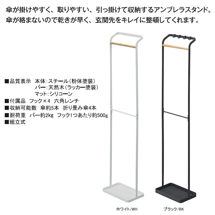 ■商品サイズ:幅25×奥行き15×高さ105cm ■重量:1900g ■素材・材料:フレーム:スチール(粉体塗装) バー:天然木(ラッカー塗装) マット:シリコーン ●傘が掛けやすく、取りやすい、引っ掛けて収納するアンブレラスタンド。